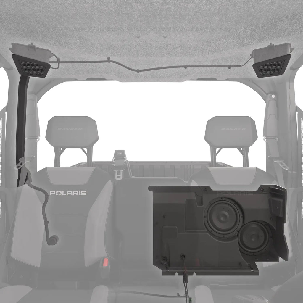 Upgrade your RANGER to the next level with the JBL® Trail Pro 4200 Audio Upgrade Kit, featuring two 40 Watt 4” speakers, a 40 Watt x 4 channel amplifier, and two 8” subwoofers powered by a 300 Watt amplifier. Enjoy the premium sound quality whether you're working or on the trail, enhance your ride with powerful and crystal-clear audio.